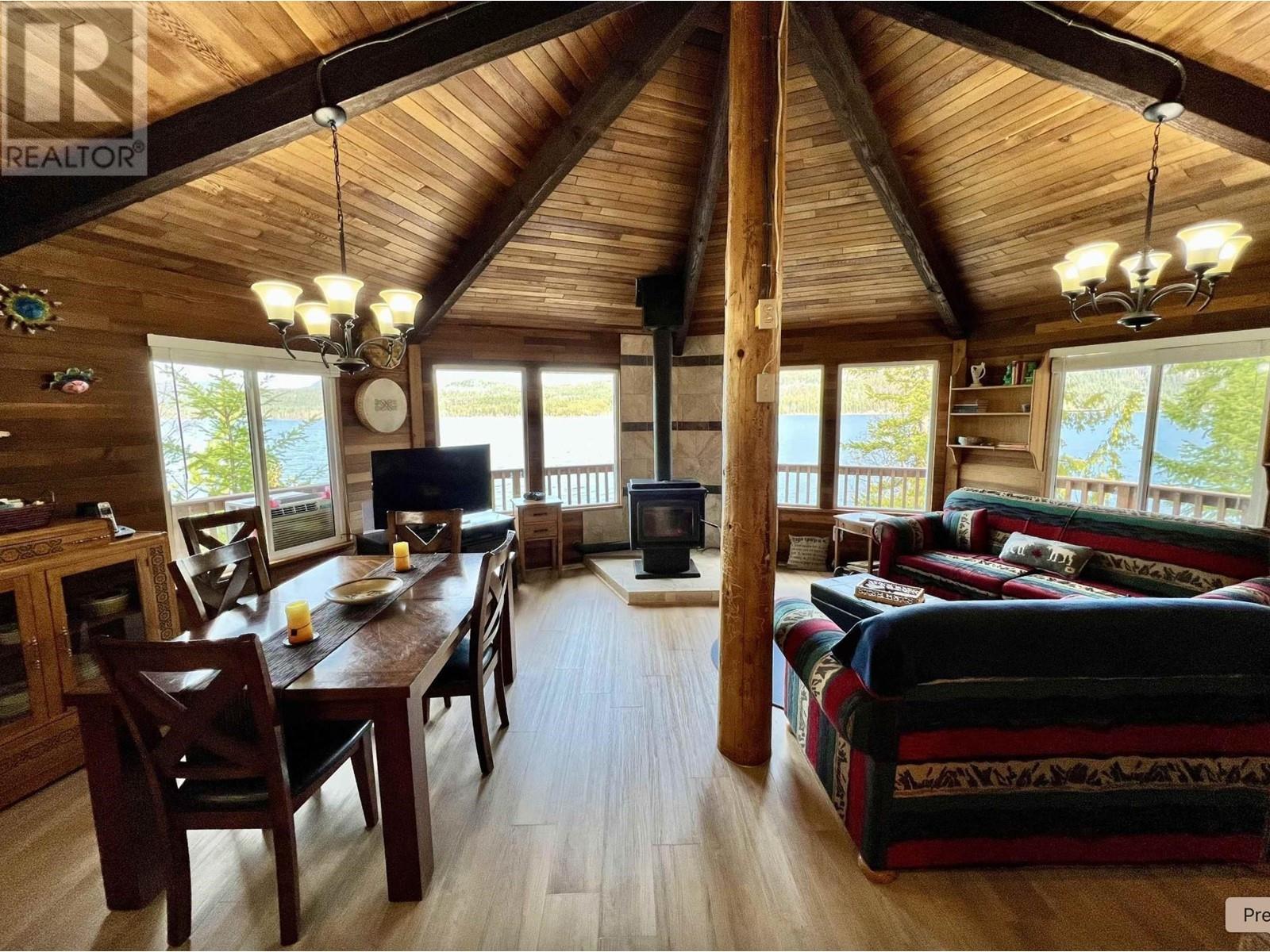 * PREC - Personal Real Estate Corporation. Tucked into this picturesque setting, this remarkable property offers a 5-bed, 2-bath home with breathtaking waterfront on Mahood Lake. A covered BBQ area and hot tub overlook the lake—perfect for entertaining guests or relaxing after a day spent on the water. Inside, the open-concept living space features a high-efficiency forced air propane furnace and a Blaze King woodstove for cozy comfort, while an 11Kw backup generator ensures uninterrupted power. Embrace lakeside living with a boat house, complete dock system, and a lake-draw water filtration system with UV for excellent water quality. Upgraded windows in 2018 frame panoramic views of the surrounding mountains, sunsets, and nearby Wells Gray Park. An 840 sqft detached shop with two lean-to's offers ample covered parking and storage. (id:4069)
