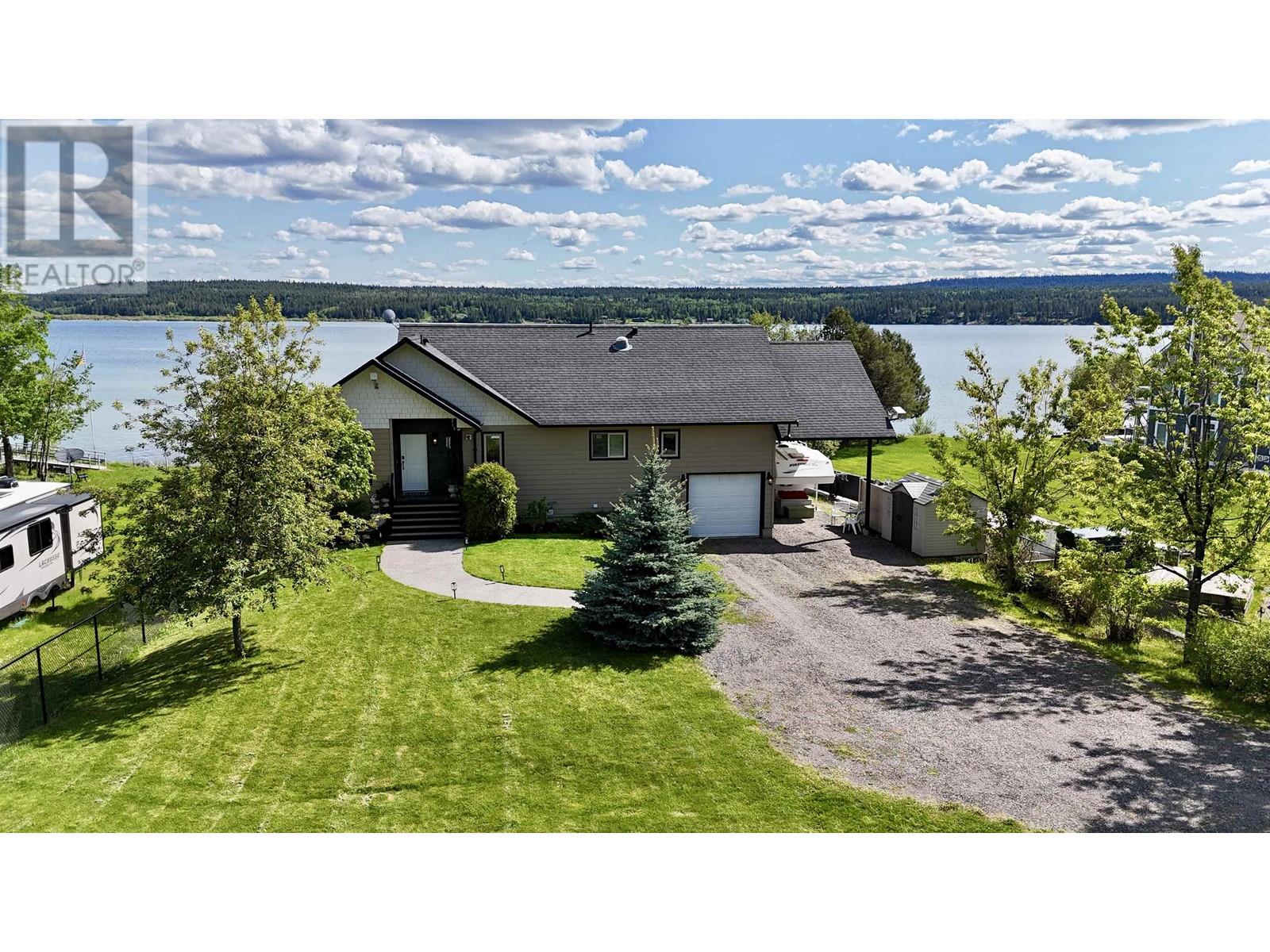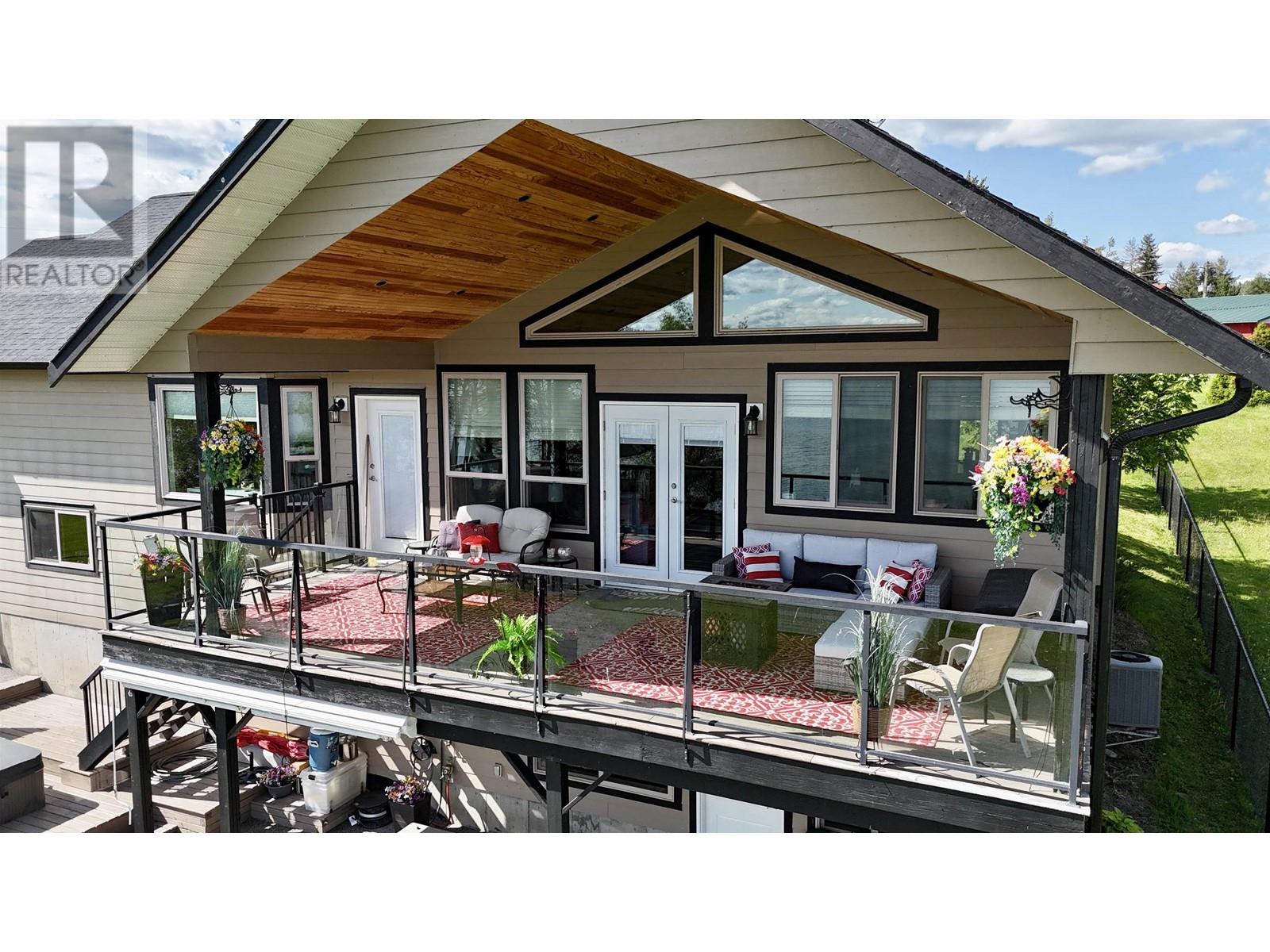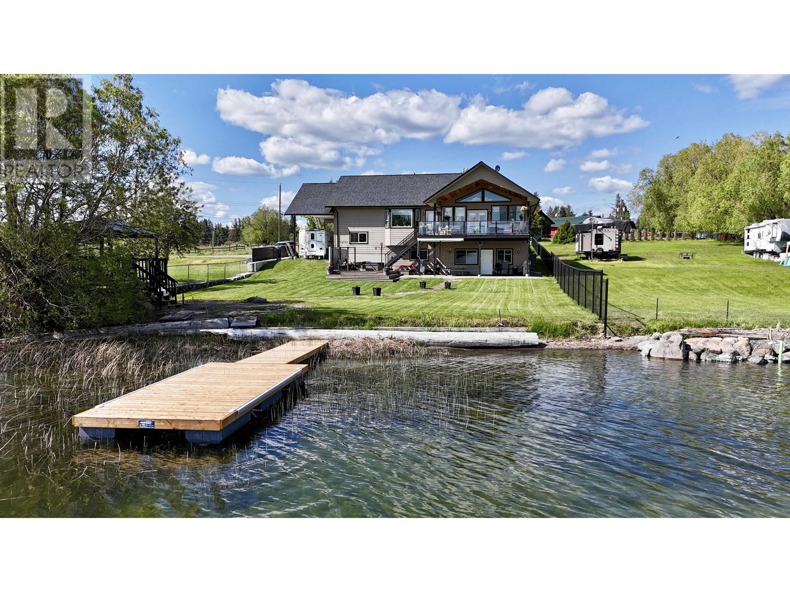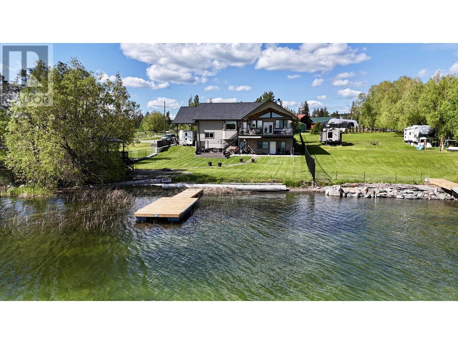 * PREC - Personal Real Estate Corporation. Beautifully crafted home on the shores of Lac La Hache with panoramic lake views and quality finishes throughout. The vaulted main level features an open-concept design, an island kitchen perfect for entertaining, and a spacious primary suite with a luxurious 5-piece ensuite. Step out onto the fabulous covered deck, perfect for outdoor dining and enjoying the view. The walk-out lower level includes a fully self-contained 2-bedroom suite, ideal for guests, family, or rental income. Extras include A/C, hot water on demand, hot tub, lakeside gazebo, brand-new dock, RV carport with sani-dump, and an attached garage. Just a short walk to the bakery, pizza shop, and more. Immaculately maintained and shows like new. This is turnkey waterfront living at its best. (id:4069)