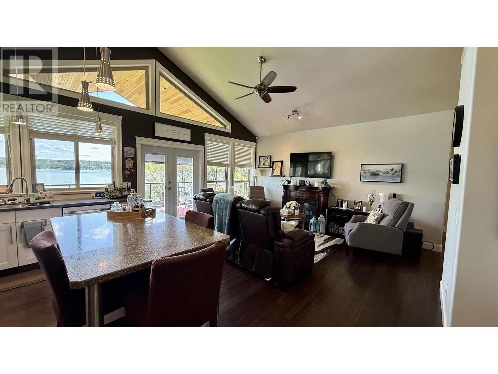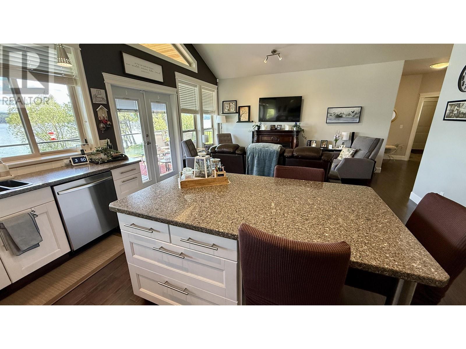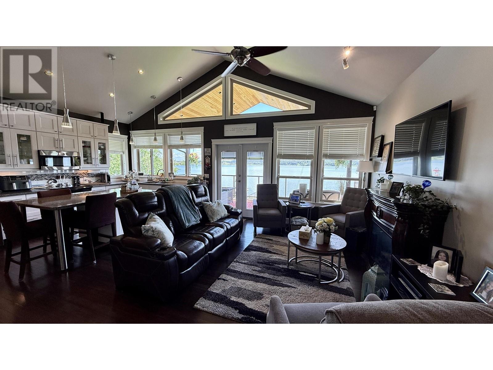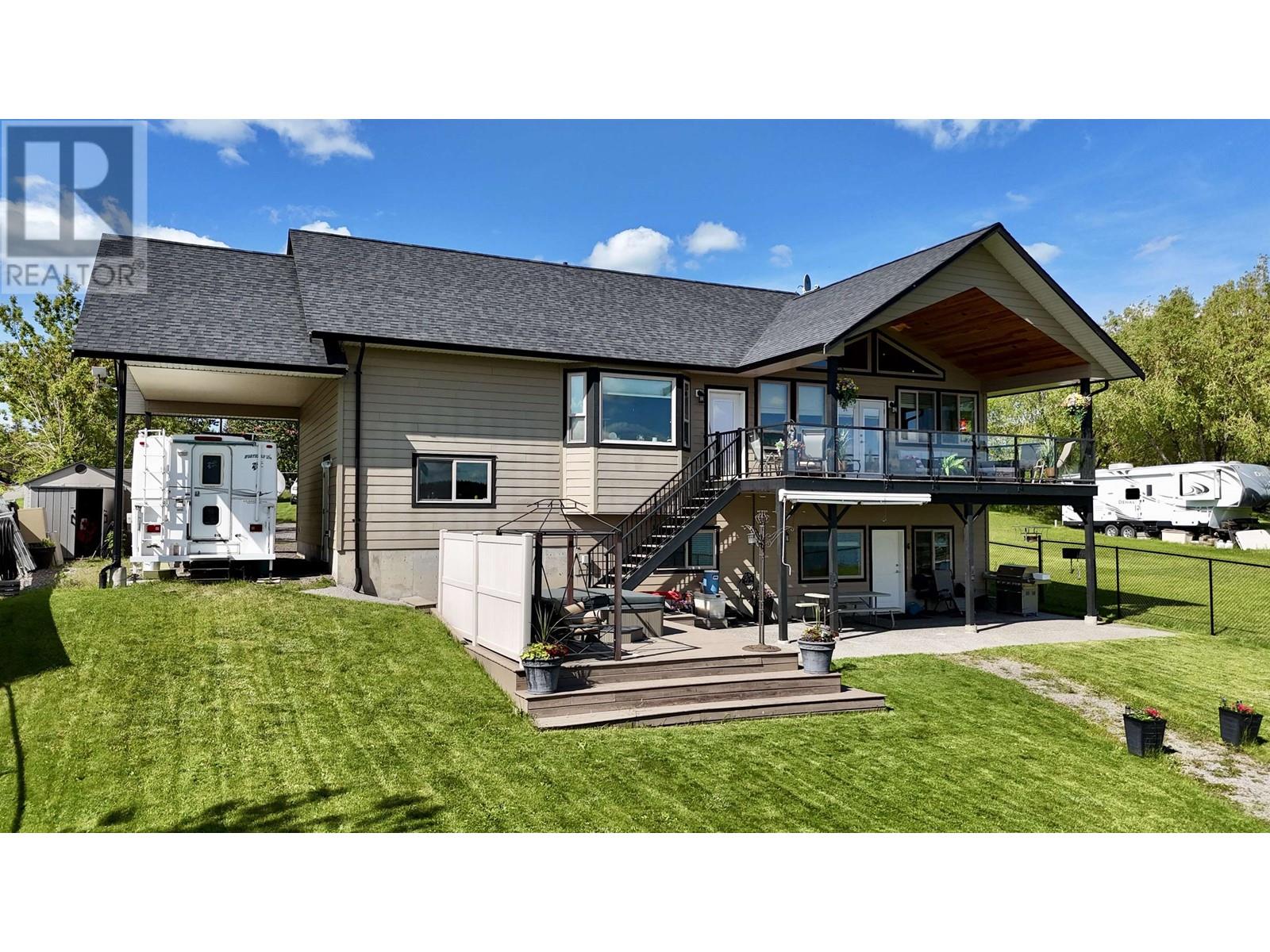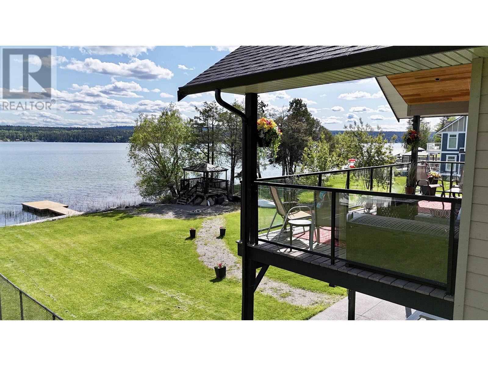 * PREC - Personal Real Estate Corporation. Beautifully crafted home on the shores of Lac La Hache with panoramic lake views and quality finishes throughout. The vaulted main level features an open-concept design, an island kitchen perfect for entertaining, and a spacious primary suite with a luxurious 5-piece ensuite. Step out onto the fabulous covered deck, perfect for outdoor dining and enjoying the view. The walk-out lower level includes a fully self-contained 2-bedroom suite, ideal for guests, family, or rental income. Extras include A/C, hot water on demand, hot tub, lakeside gazebo, brand-new dock, RV carport with sani-dump, and an attached garage. Just a short walk to the bakery, pizza shop, and more. Immaculately maintained and shows like new. This is turnkey waterfront living at its best. (id:4069)