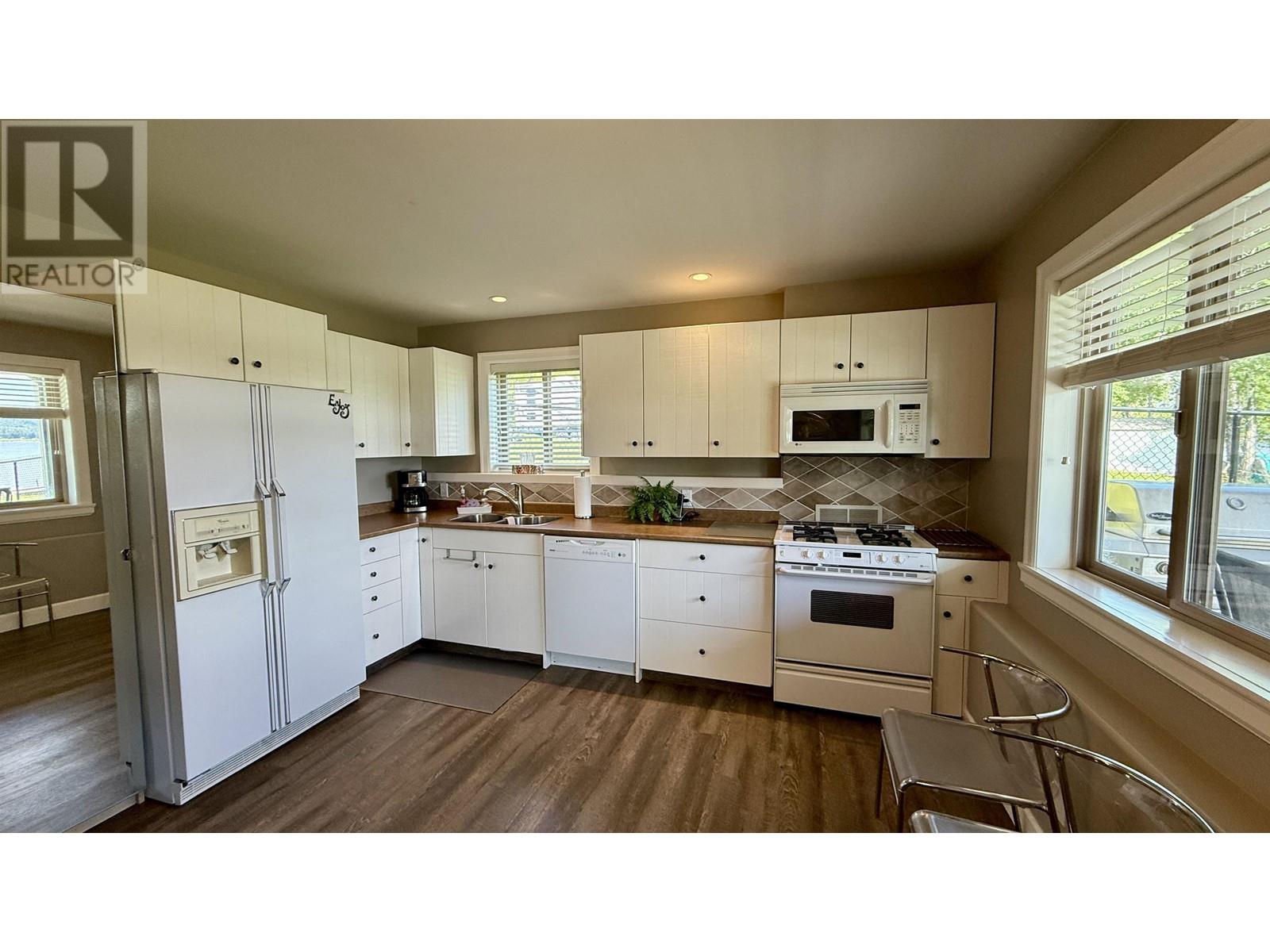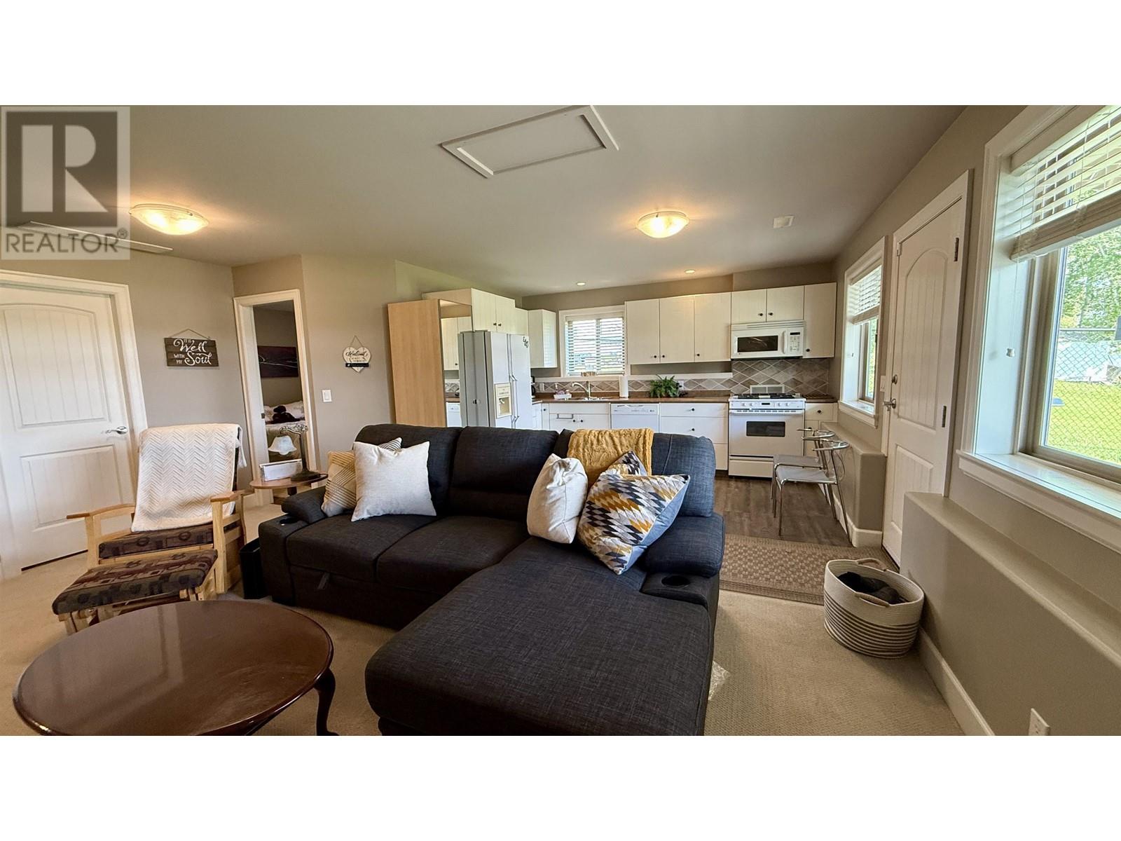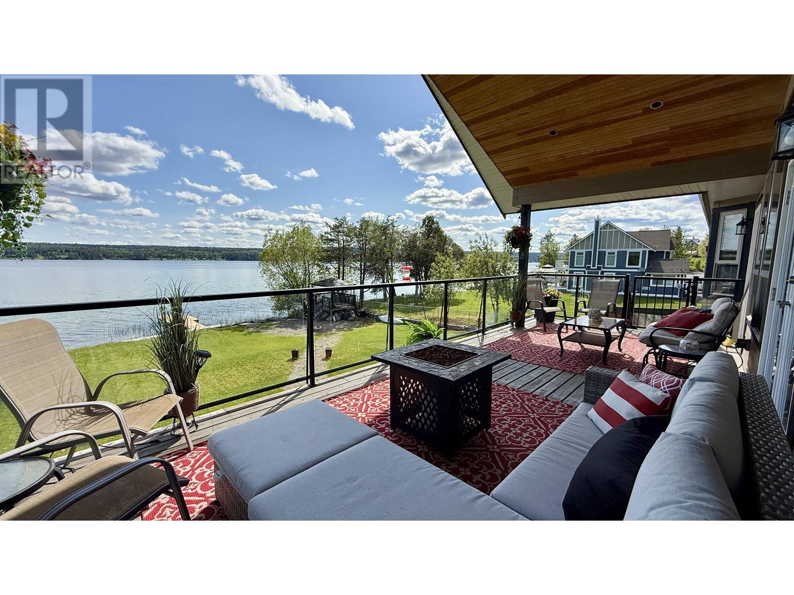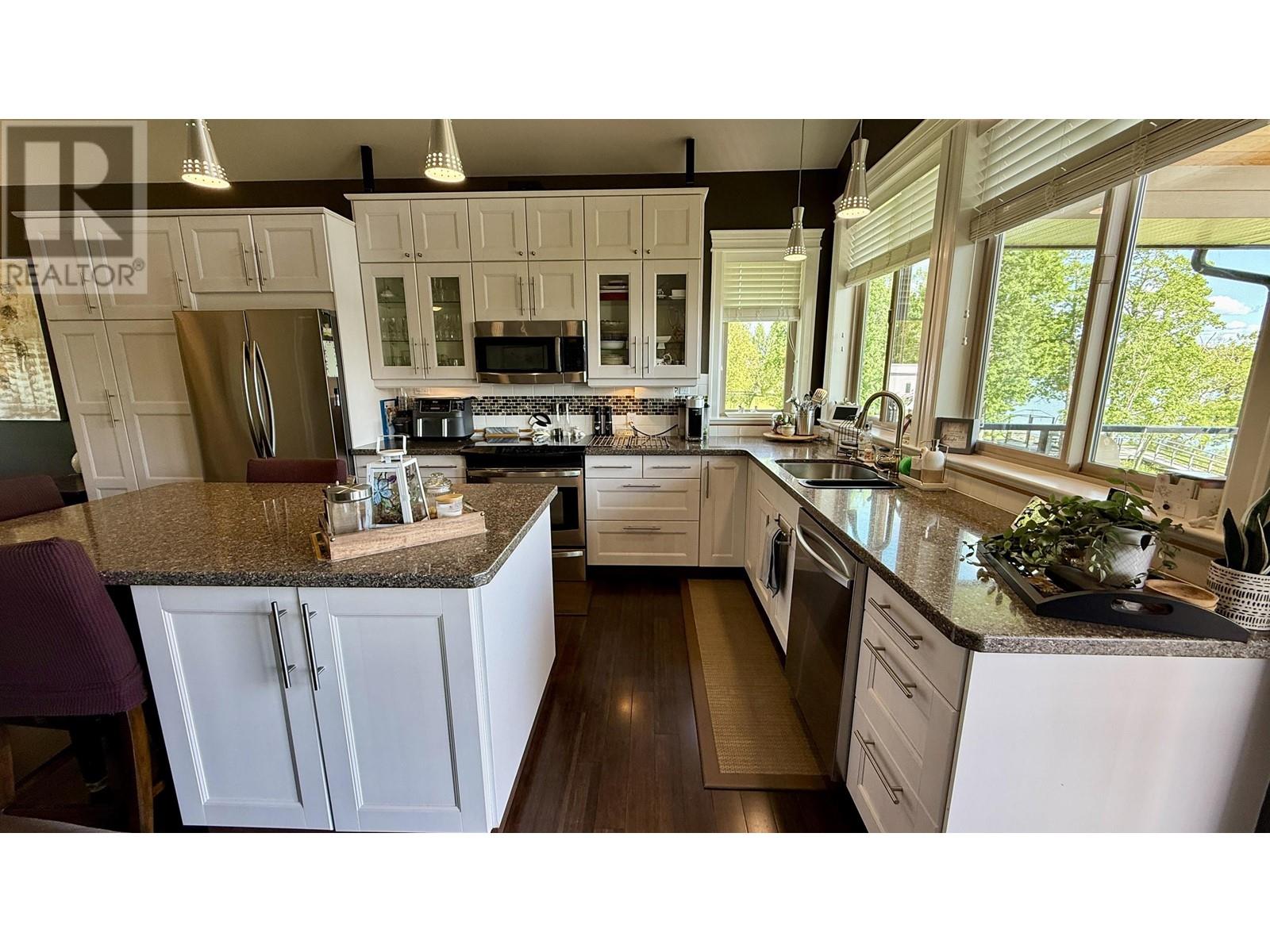 * PREC - Personal Real Estate Corporation. Beautifully crafted home on the shores of Lac La Hache with panoramic lake views and quality finishes throughout. The vaulted main level features an open-concept design, an island kitchen perfect for entertaining, and a spacious primary suite with a luxurious 5-piece ensuite. Step out onto the fabulous covered deck, perfect for outdoor dining and enjoying the view. The walk-out lower level includes a fully self-contained 2-bedroom suite, ideal for guests, family, or rental income. Extras include A/C, hot water on demand, hot tub, lakeside gazebo, brand-new dock, RV carport with sani-dump, and an attached garage. Just a short walk to the bakery, pizza shop, and more. Immaculately maintained and shows like new. This is turnkey waterfront living at its best. (id:4069)