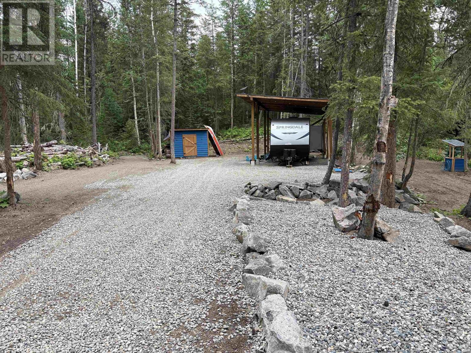 Looking for an affordable complete package to get a way from it all? This beautiful lot on Candle Drive at Hawkins Lake fits the need. This property contains a 500 gallon waste holding tank, electricity (200 amp service), a 35'x20' RV shelter, and a 12'x8' storage shed this is set up perfectly. The lot is cleared, driveway is in and some nice landscaping as well. Hawkins Lake is within walking distance, Canim Lake just 10 minutes away. Canoe, kayak, fish, hike, kick back with a coffee - unlimited options to enjoy what the Cariboo offers. Travel trailer on property must be purchased separately and directly from the Seller. (id:4069)