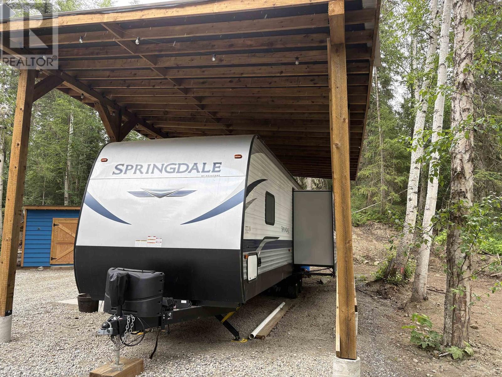 Looking for an affordable complete package to get a way from it all? This beautiful lot on Candle Drive at Hawkins Lake fits the need. This property contains a 500 gallon waste holding tank, electricity (200 amp service), a 35'x20' RV shelter, and a 12'x8' storage shed this is set up perfectly. The lot is cleared, driveway is in and some nice landscaping as well. Hawkins Lake is within walking distance, Canim Lake just 10 minutes away. Canoe, kayak, fish, hike, kick back with a coffee - unlimited options to enjoy what the Cariboo offers. Travel trailer on property must be purchased separately and directly from the Seller. (id:4069)