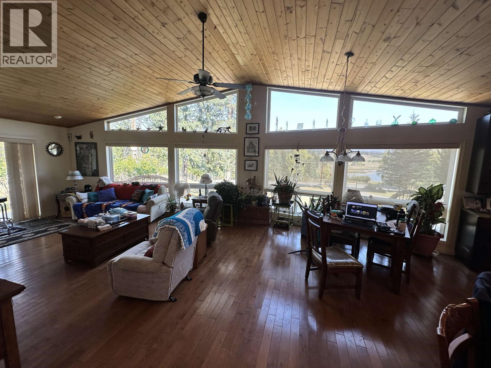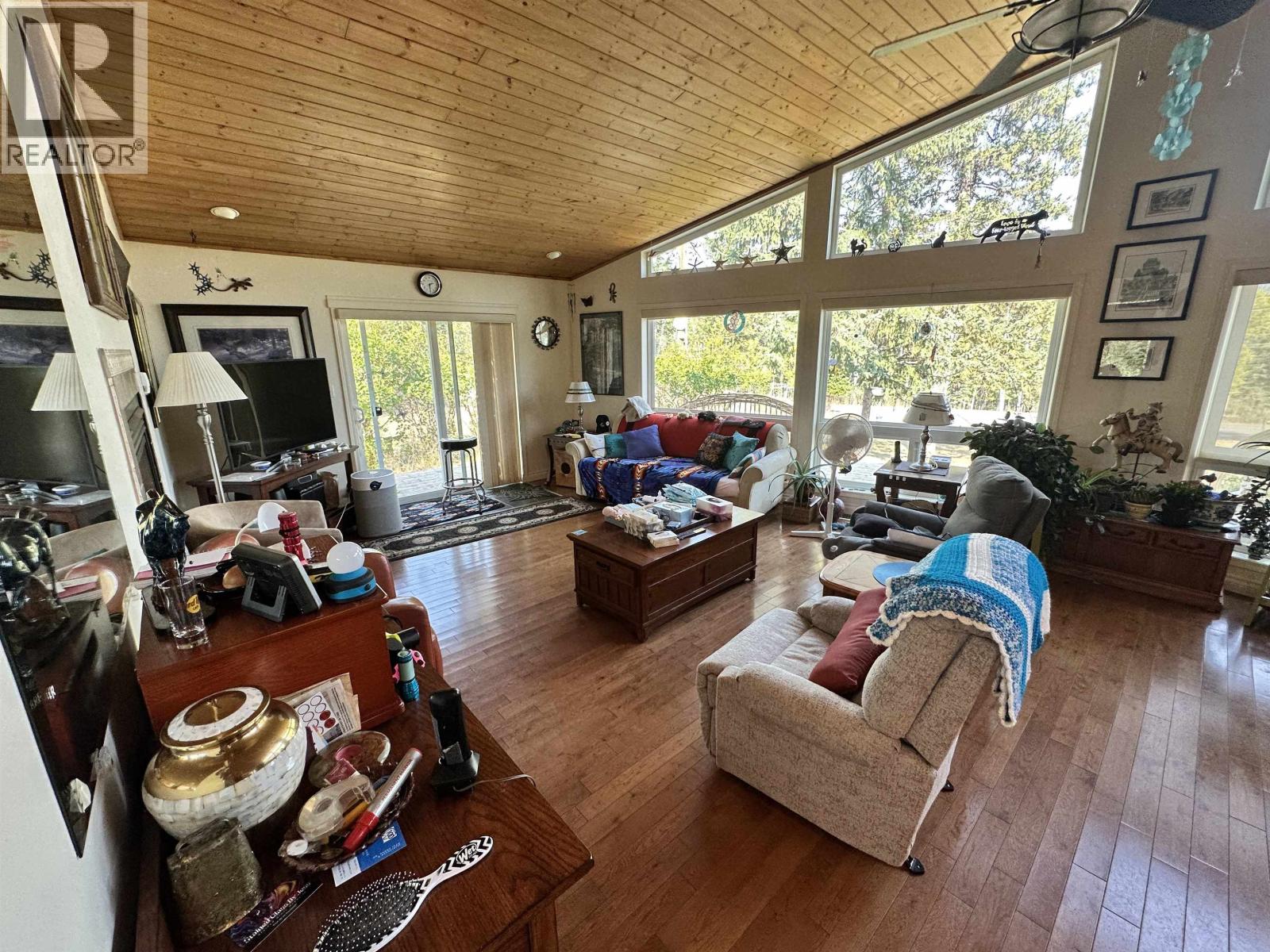 Welcome to this beautiful 3 bdrm, 2 bath rancher on 0.68ac. Featuring vaulted ceilings, an open-concept layout, & large windows that flood the space with natural light while offering views of Sepa Lake & 108 Mile Golf Course. The spacious kitchen connects seamlessly to the dining & living areas, complete with a cozy gas fireplace. Outside you’ll find a fully fenced yard, perfect for kids & pets, along with a patio for entertaining. A detached workshop with storage provides space for projects and equipment. Adding incredible value, the property also includes a second dwelling with power, water, & septic, ideal for in-laws, guests, or as a mortgage helper. With a peaceful rural setting yet close to tons recreation, this property offers a lifestyle of comfort, flexibility, and natural beauty. (id:4069)