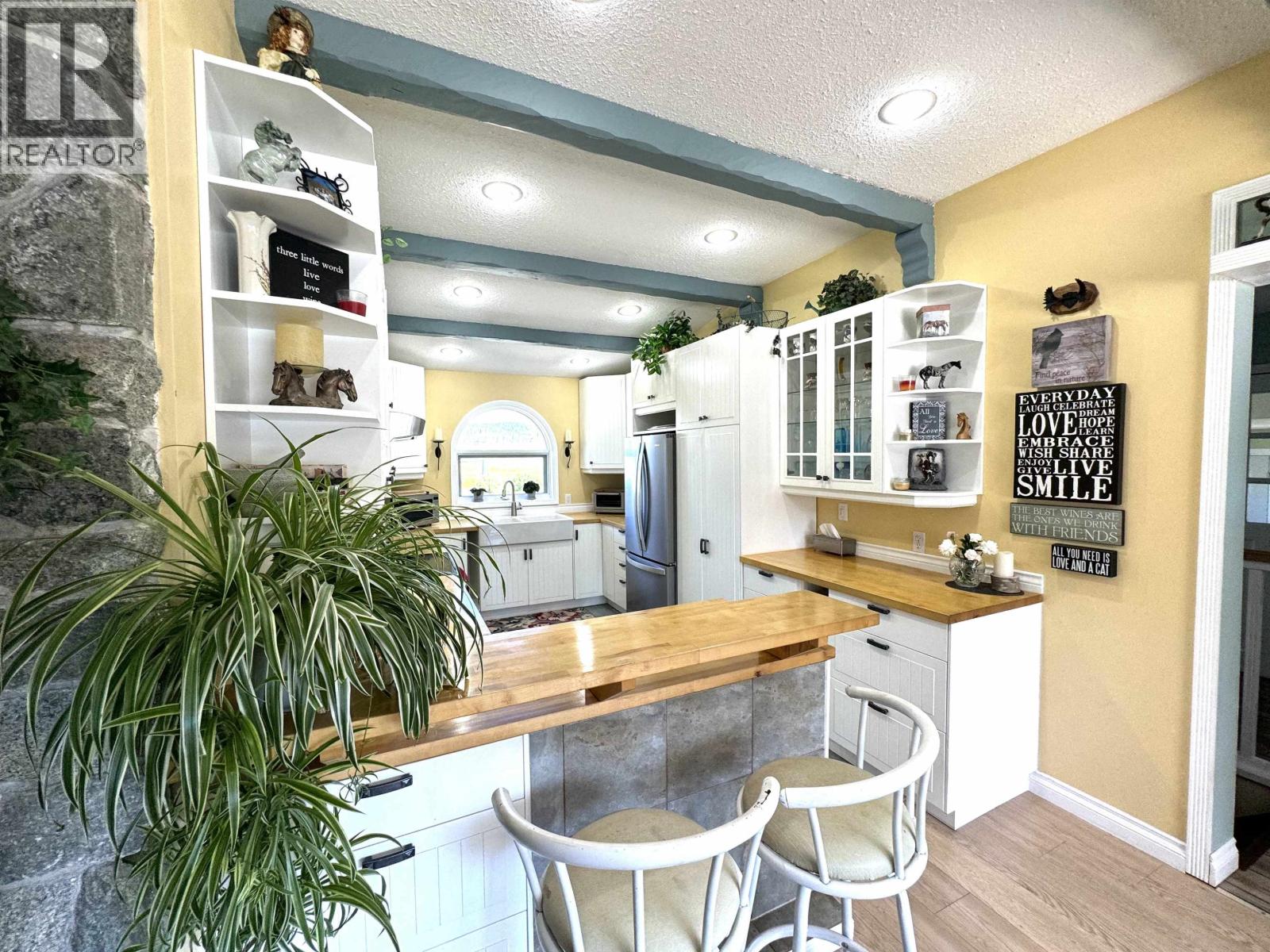 This 10-acre hobby or horse farm offers a stunning 1,000 ft of pristine waterfront framed by vibrant autumn colors. The heart of the property is a beautifully renovated 3,700 sq ft ranch-style home with 3 bedrooms and 3 baths, a cozy rec room, a sun-filled lakeview solarium, sauna, and even a bunker - all wrapped in that warm, inviting farmhouse charm A delightful 1,200 sq ft secondary home with 2 bedrooms and 2 baths makes an ideal in-law residence or mortgage helper. For those with hobbies or horses, the property also features a 30 x 40 ft shop, a 6-stall barn with hay storage and tack room, and an outdoor riding arena. With crown land nearby, you can enjoy endless trail riding adventures on horseback, ATV, or foot. This is the perfect season to make your move! PRICED BELOW ASSESSED! (id:4069)