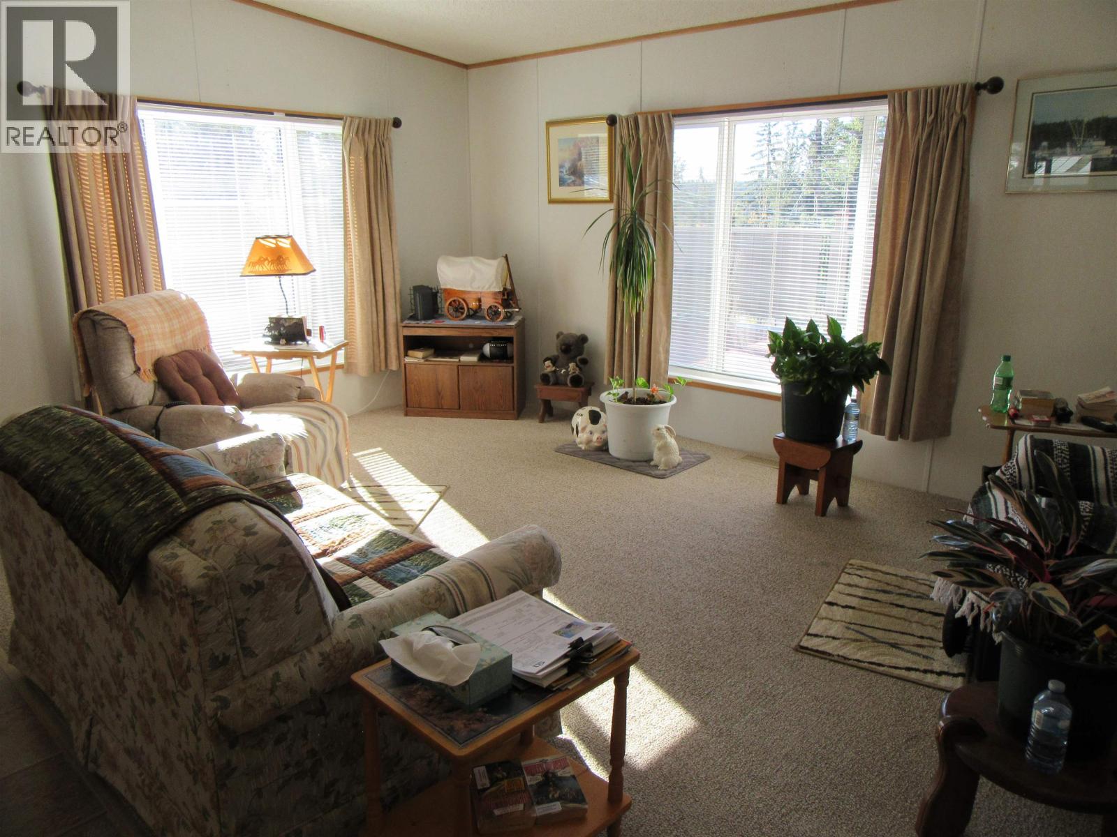 Well maintained 3 bdrm plus den, 2 bathroom modular home on a level 0.75 acre lot in the popular 108 Mile Ranch. Open floor plan, perfect for entertaining & family gatherings. Many large windows for an abundance of natural light. Addition is 3rd bdrm & 3 piece bathroom with interior & exterior entrances would be perfect for a home based business. Updates include - Roof 2019, Crawl Space Skirted & Insulated, Natural Gas Furnace 2024, Hot Water Tank 2019, Washer & Dryer 2021, Fridge 2018, Newer Reverse Osmosis System, Living Room Carpet 2022, Sky Lights professionally removed - nothing to do just move in and enjoy. Large sundeck overlooking the massive backyard, several storage shed's, 12 x 20 garage with hydro. Perimeter fenced property with tons of space for children & pets to play. (id:4069)