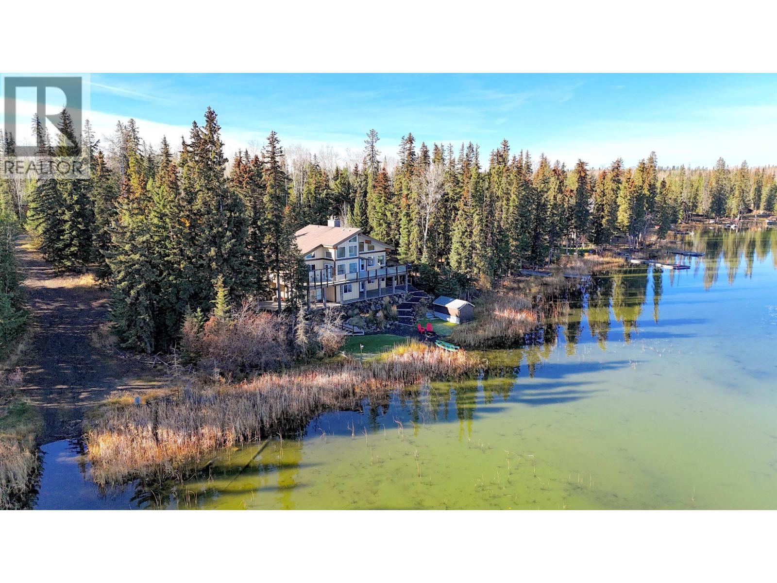 * PREC - Personal Real Estate Corporation. Luxury lakefront living on Watch Lake! This stunning custom-built home combines refined craftsmanship with the relaxed elegance of Cariboo lake life. The open-concept main floor features soaring ceilings with exposed laminated beams, granite counters, an Italian gas cooktop, & French doors opening to expansive decks overlooking the water. Natural light floods the living & dining areas, framing ever-changing & sunset views. Enjoy efficient geothermal heating & cooling for year-round comfort. The main level offers a spacious primary suite, second bedroom & laundry. Downstairs, find a large family room, third bedroom, office & a covered patio with easy access to the lake & fire pit. Heated workshop, detached double garage & carport complete this perfect lakefront package. (id:4069)